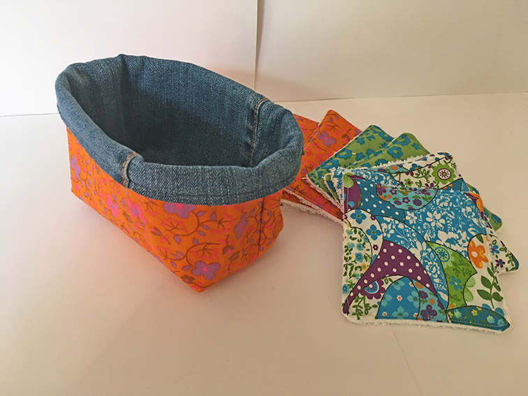 lingettes et panier 100% coton réutilisables